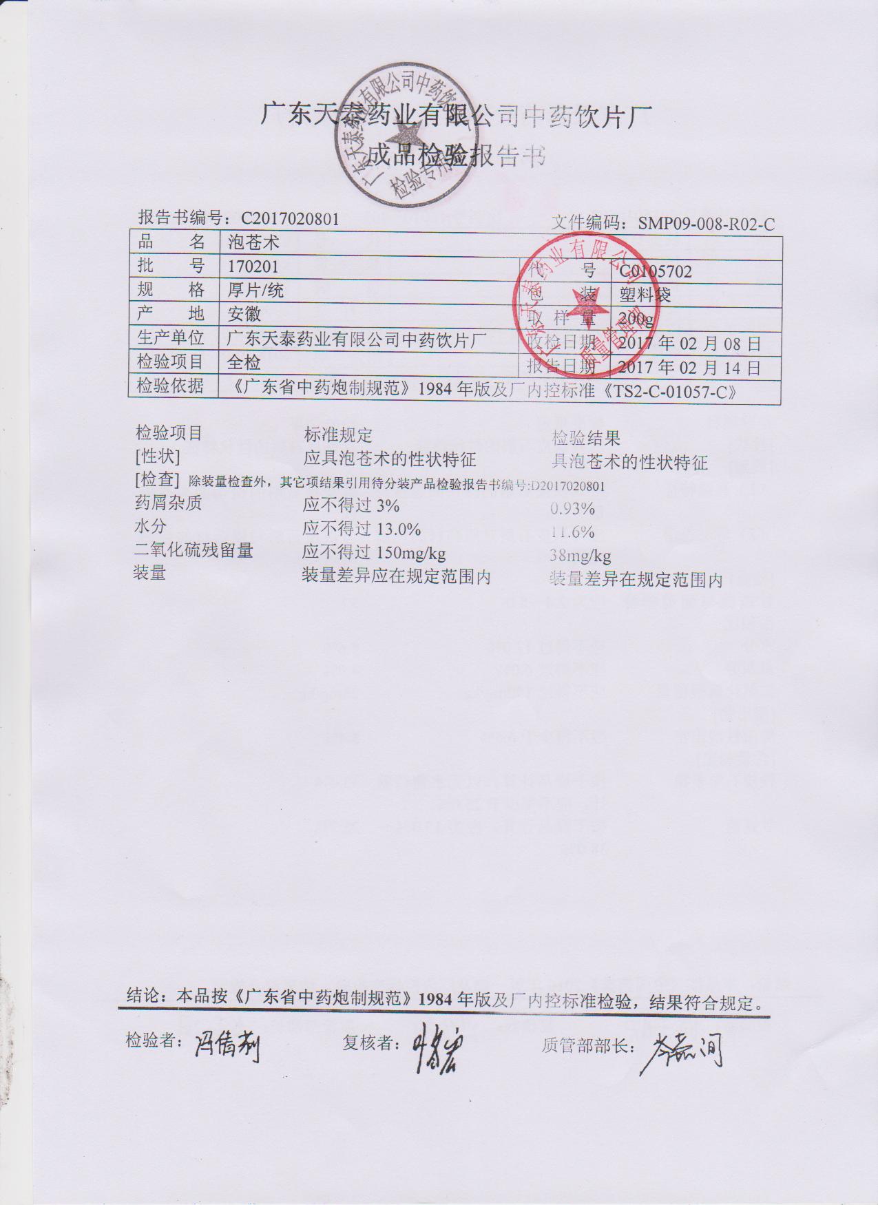 药检报告