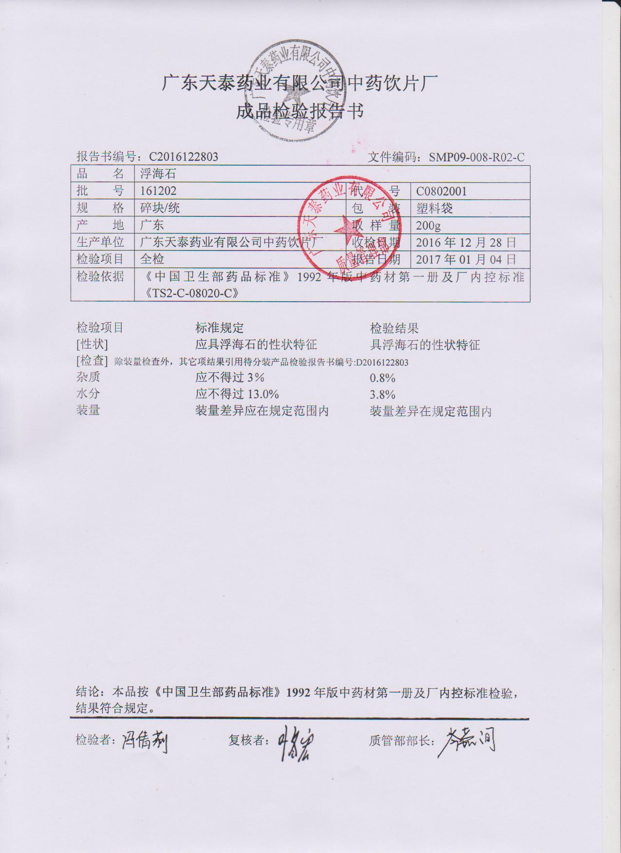 药检报告