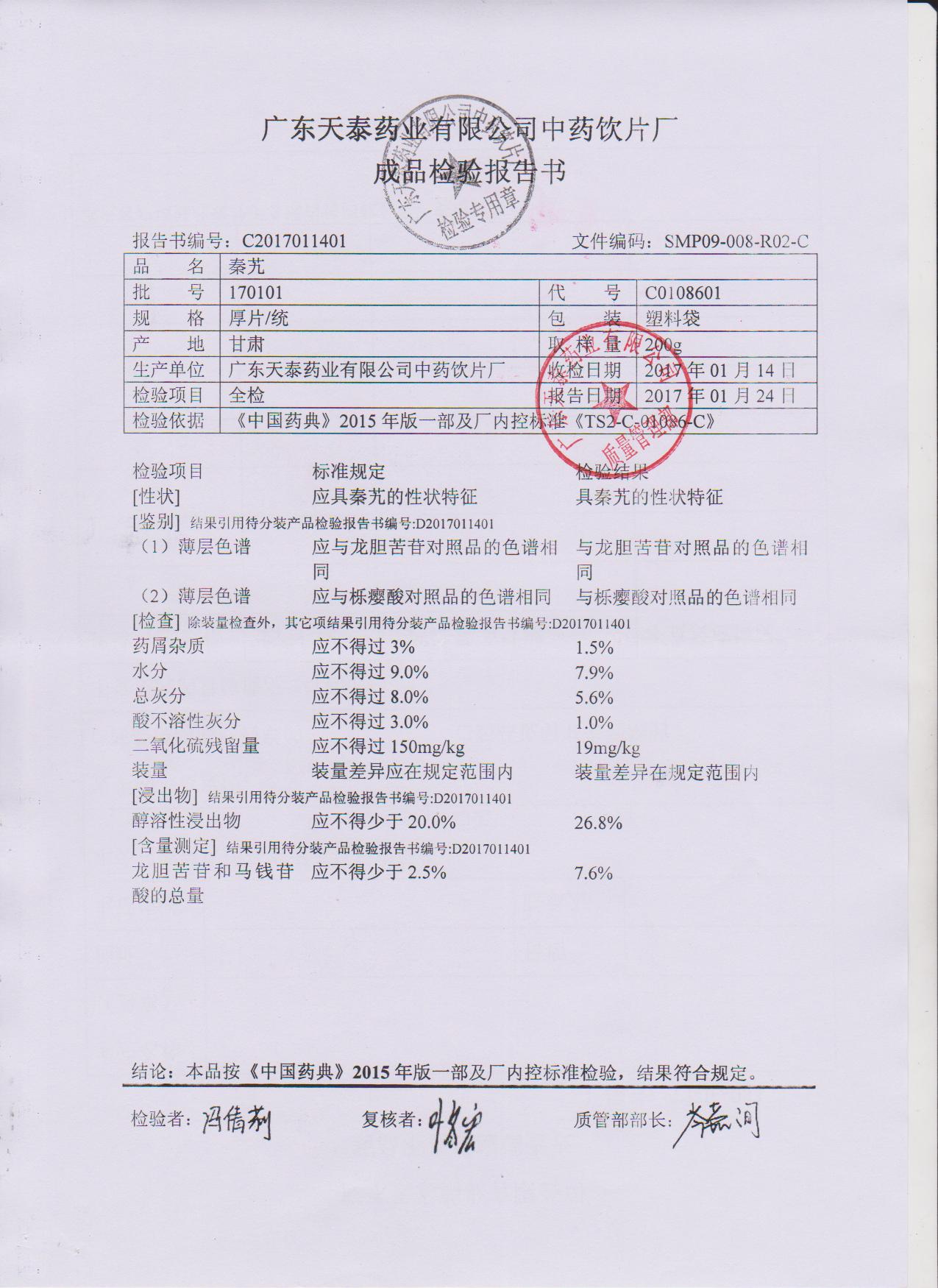 药检报告