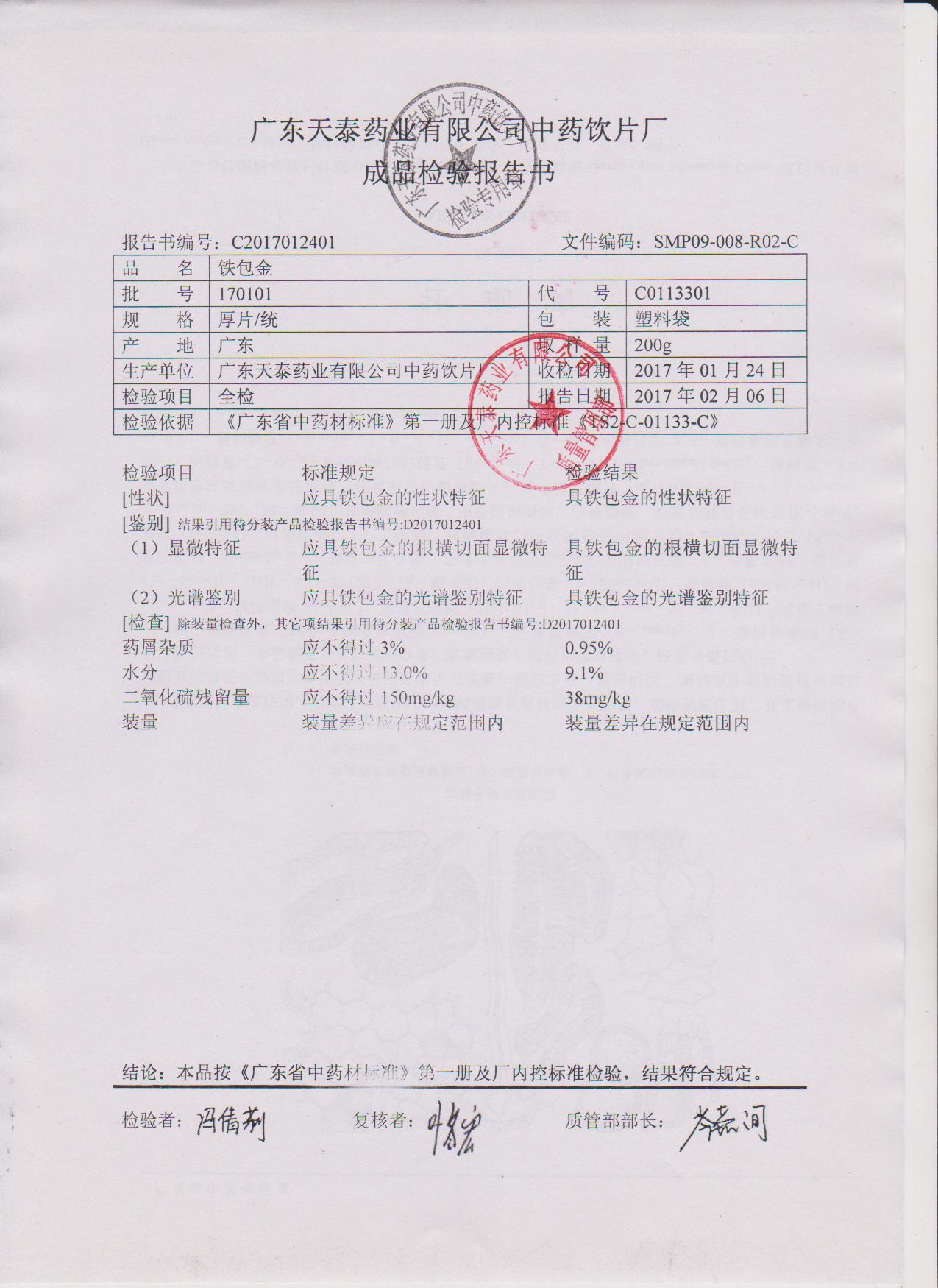 药检报告