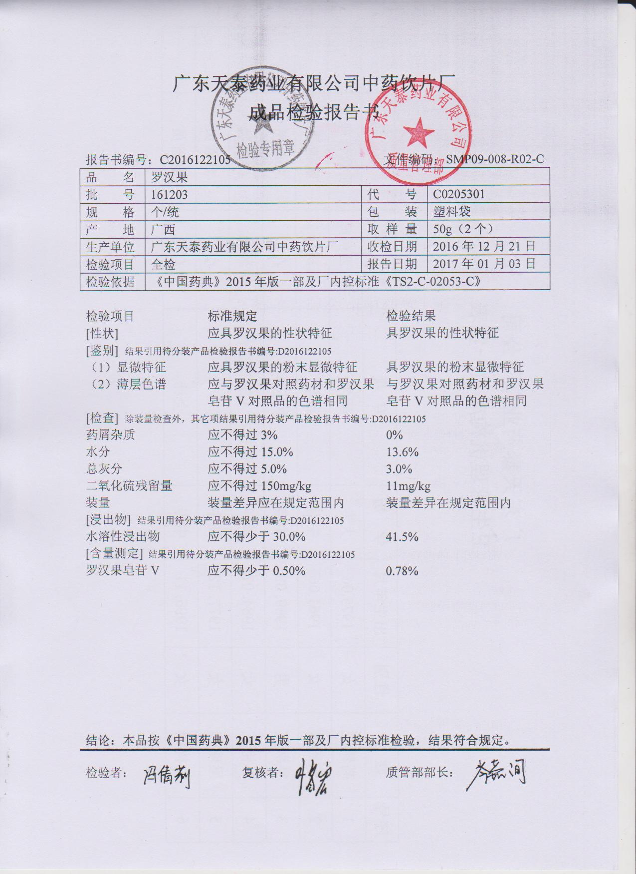 药检报告