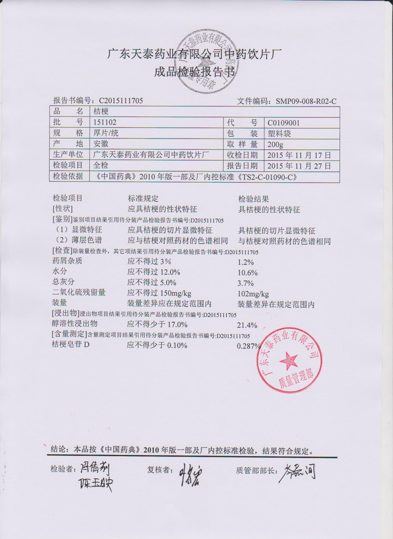 药检报告