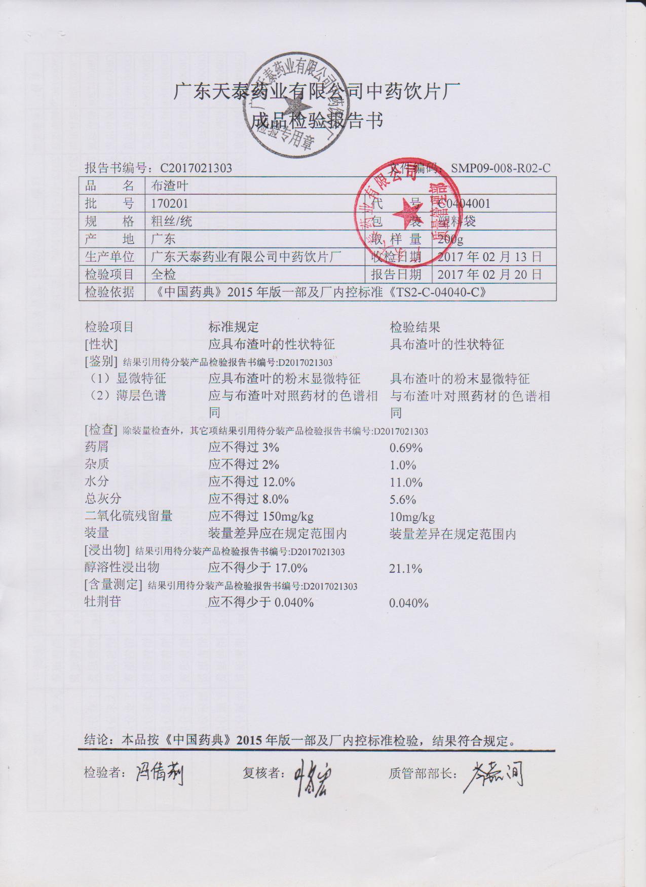 药检报告