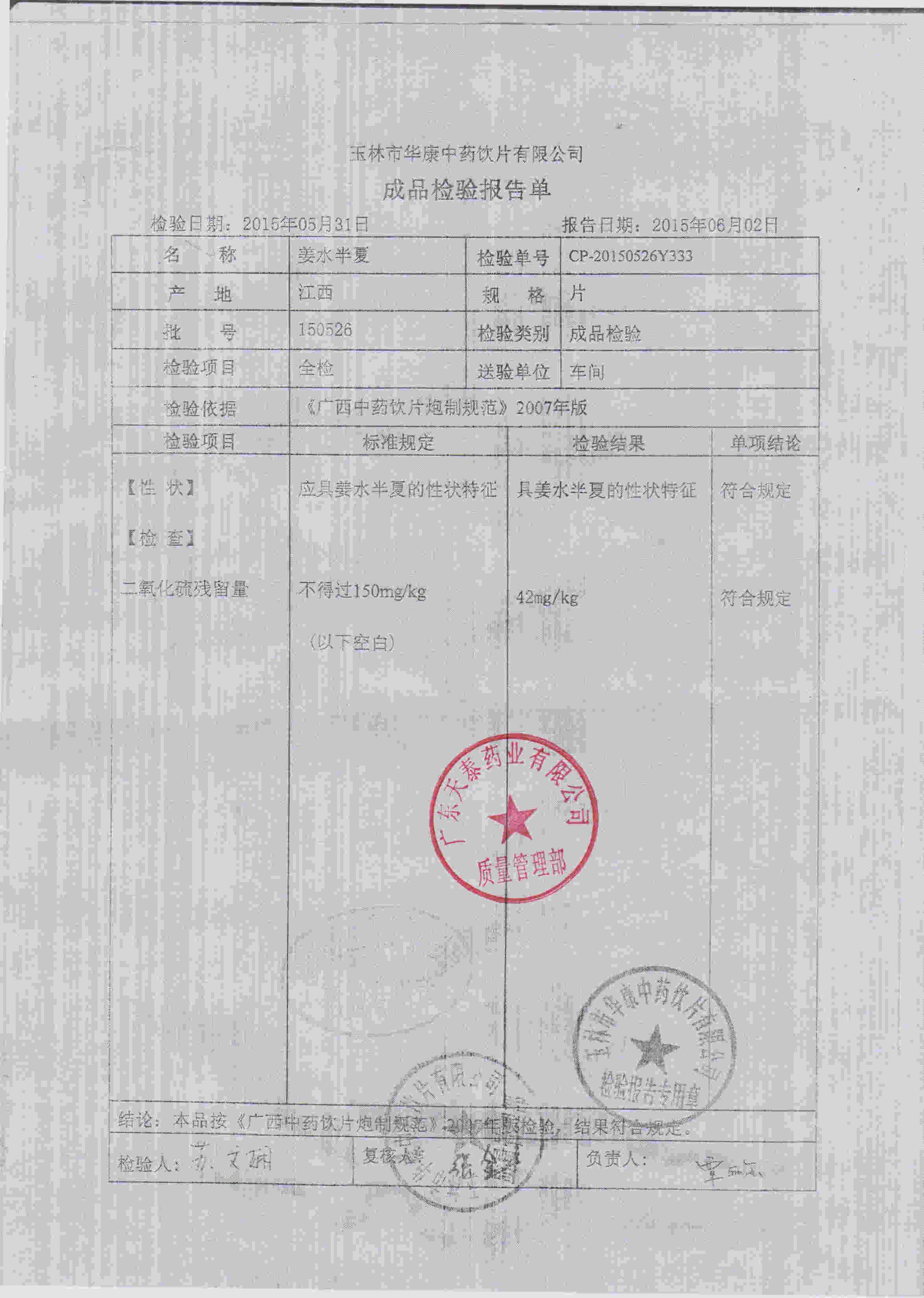 药检报告