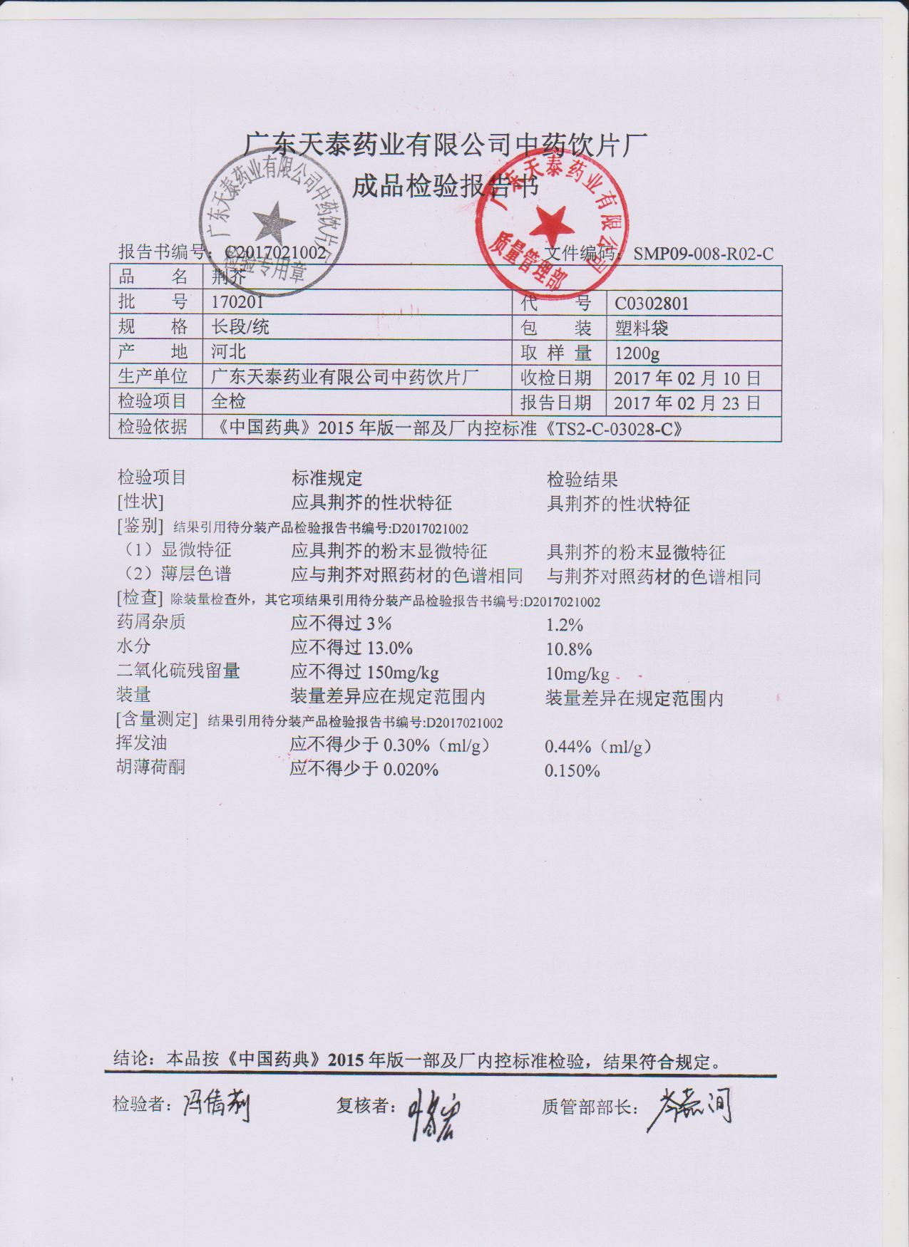 药检报告