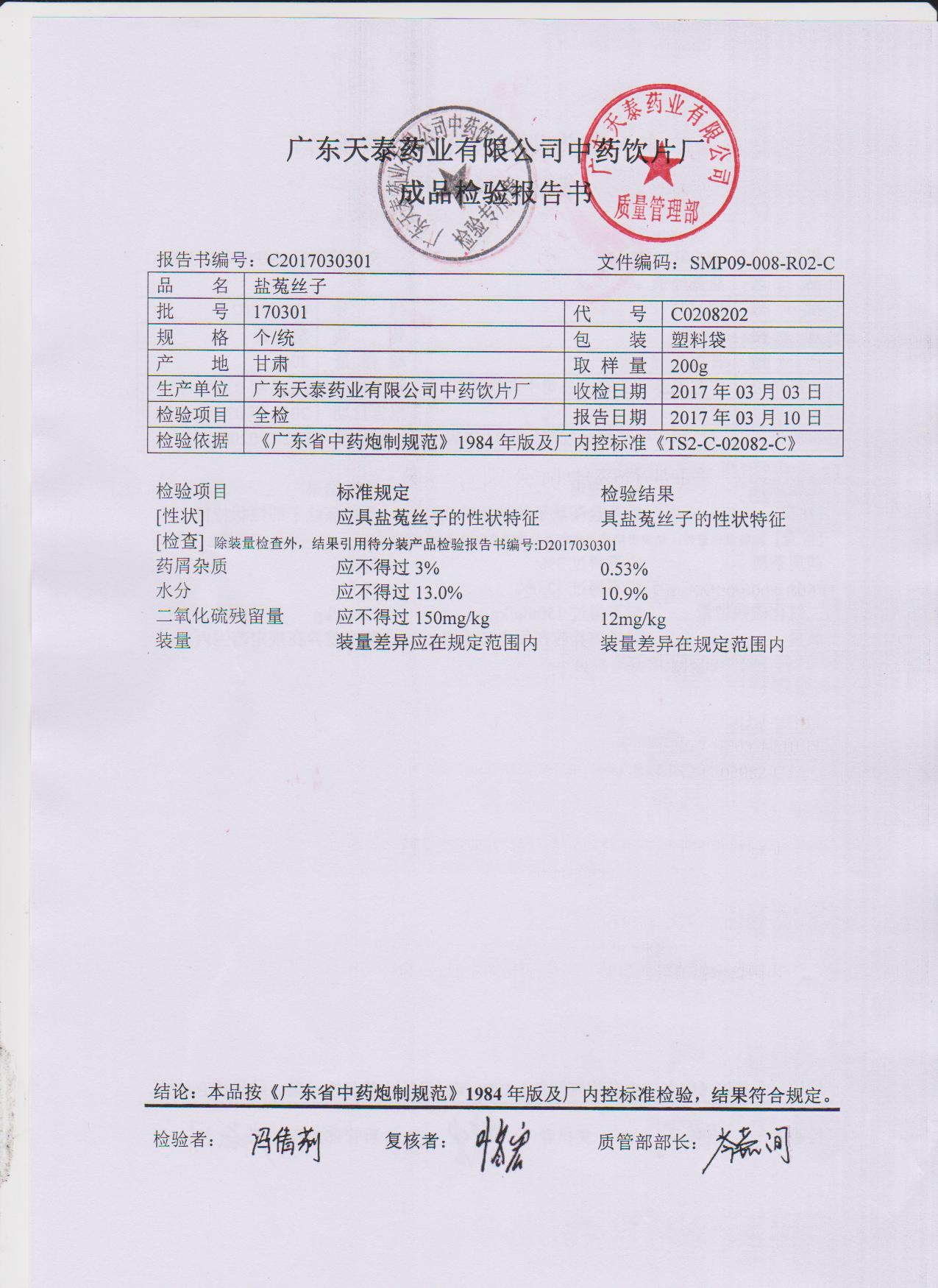 药检报告