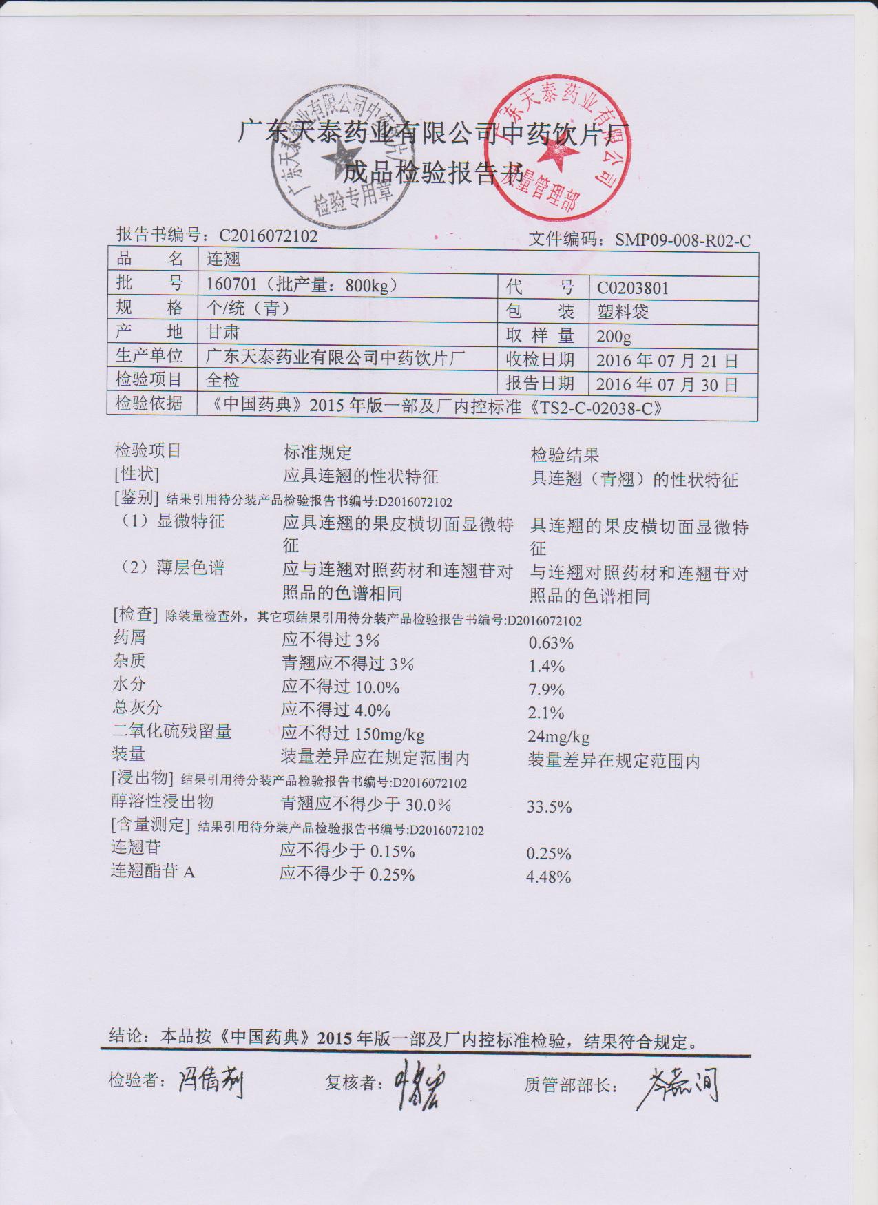 药检报告