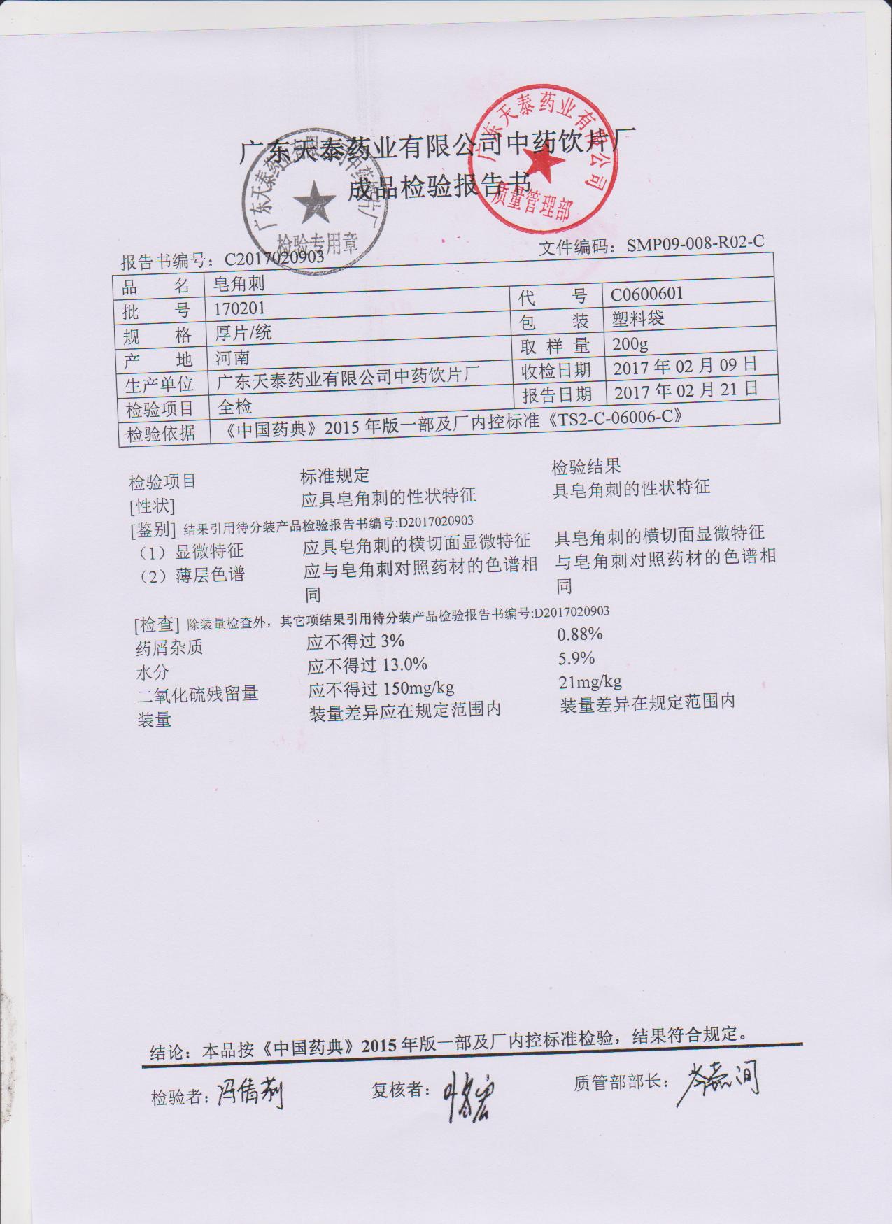 药检报告