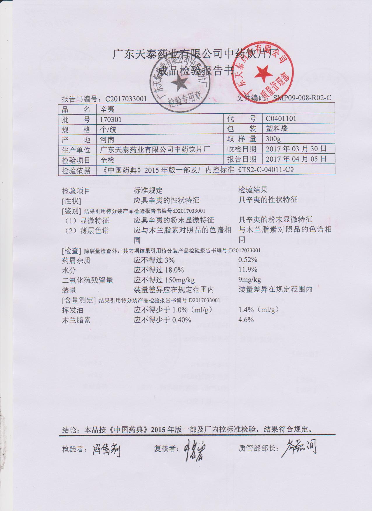 药检报告