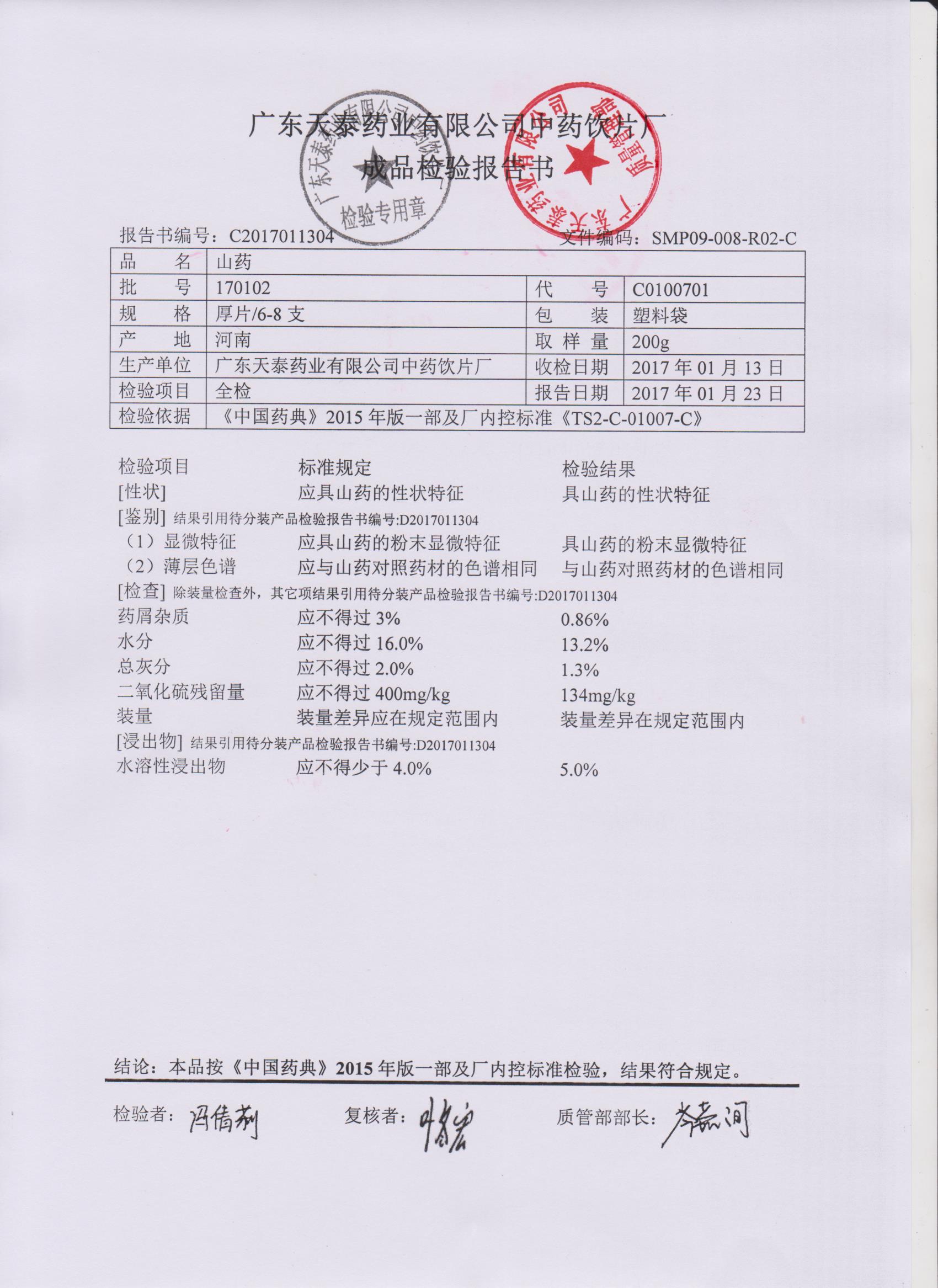 药检报告