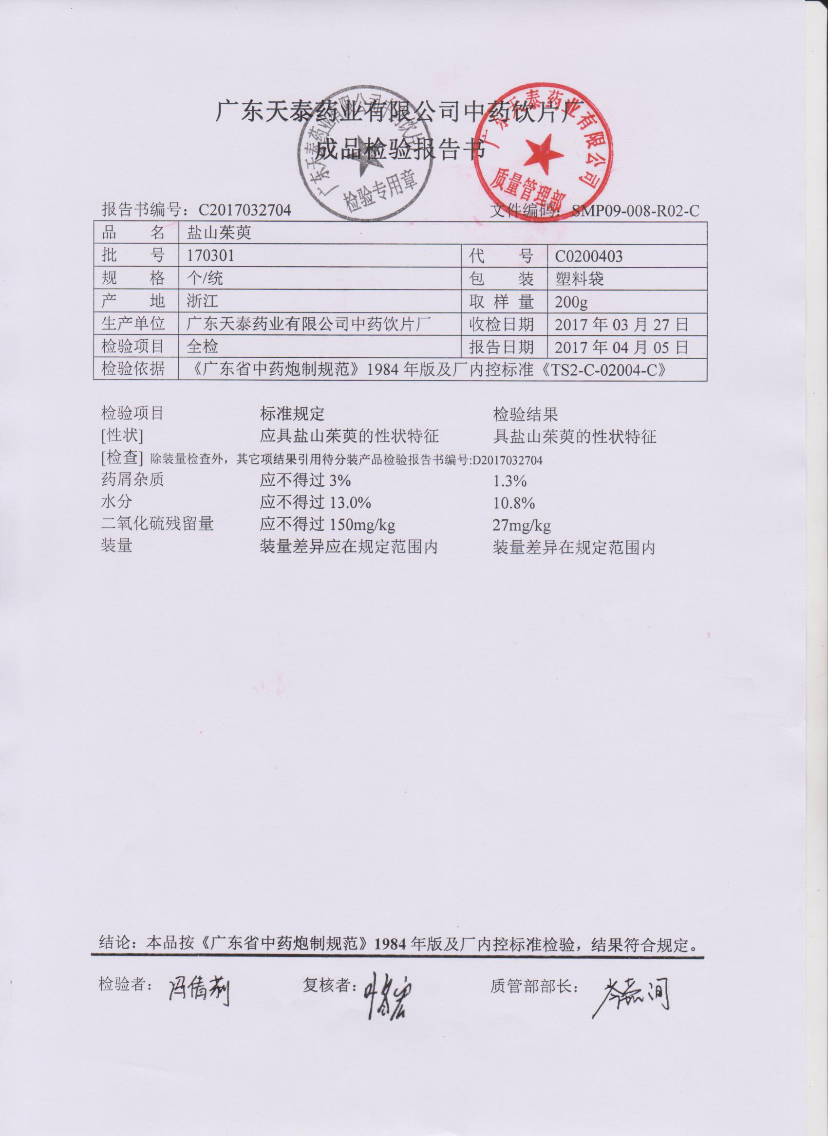 药检报告