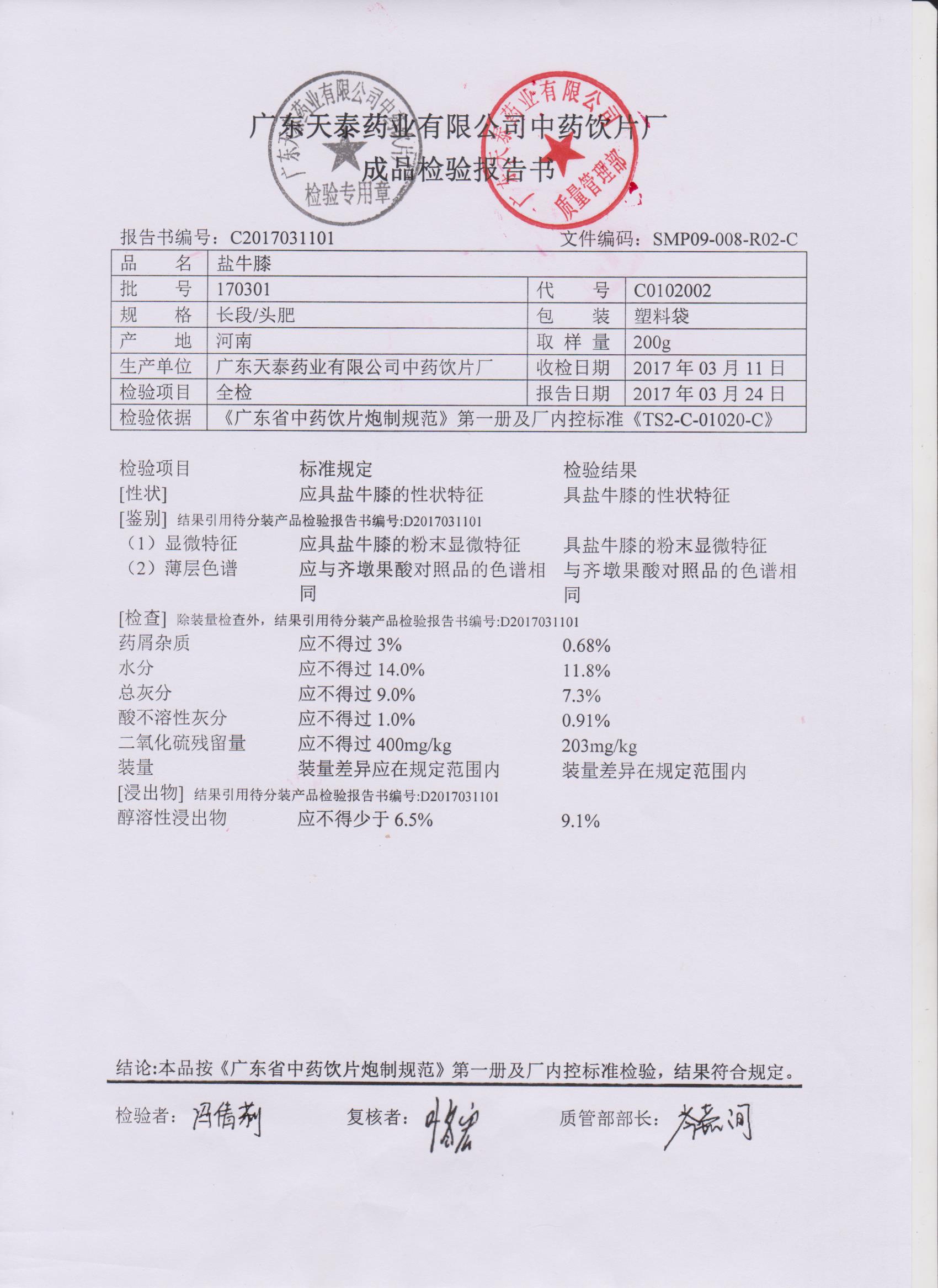 药检报告