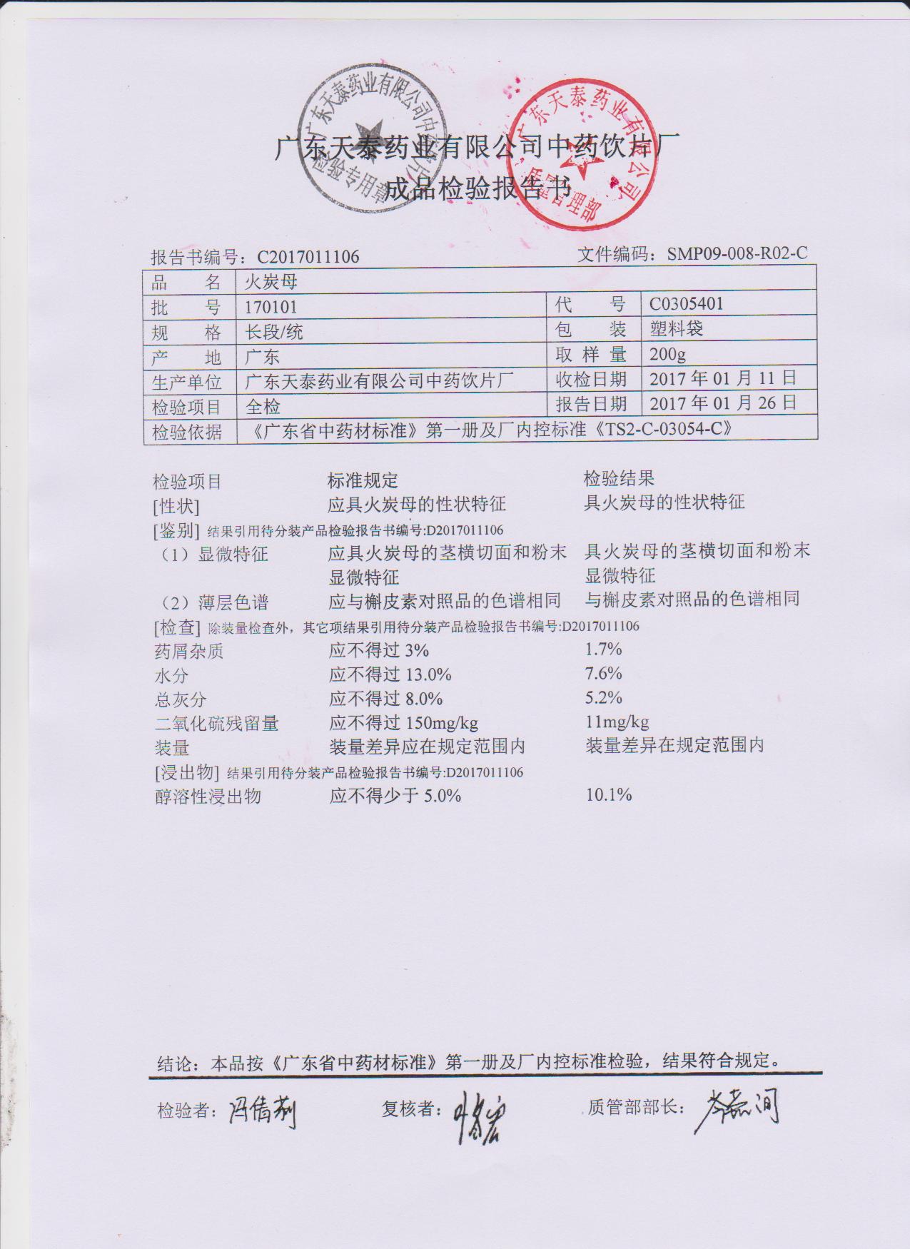 药检报告