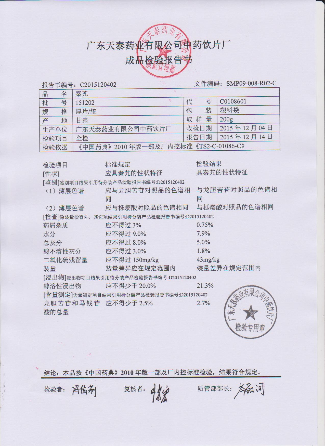 药检报告