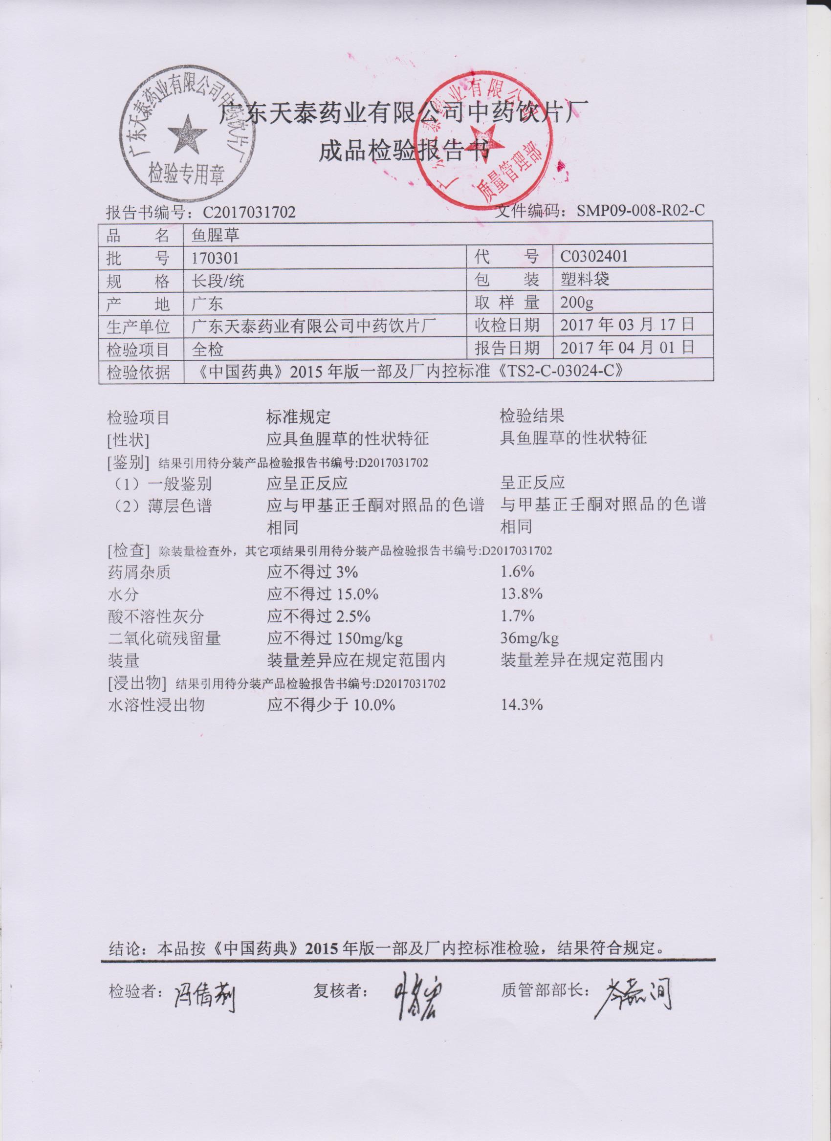 药检报告