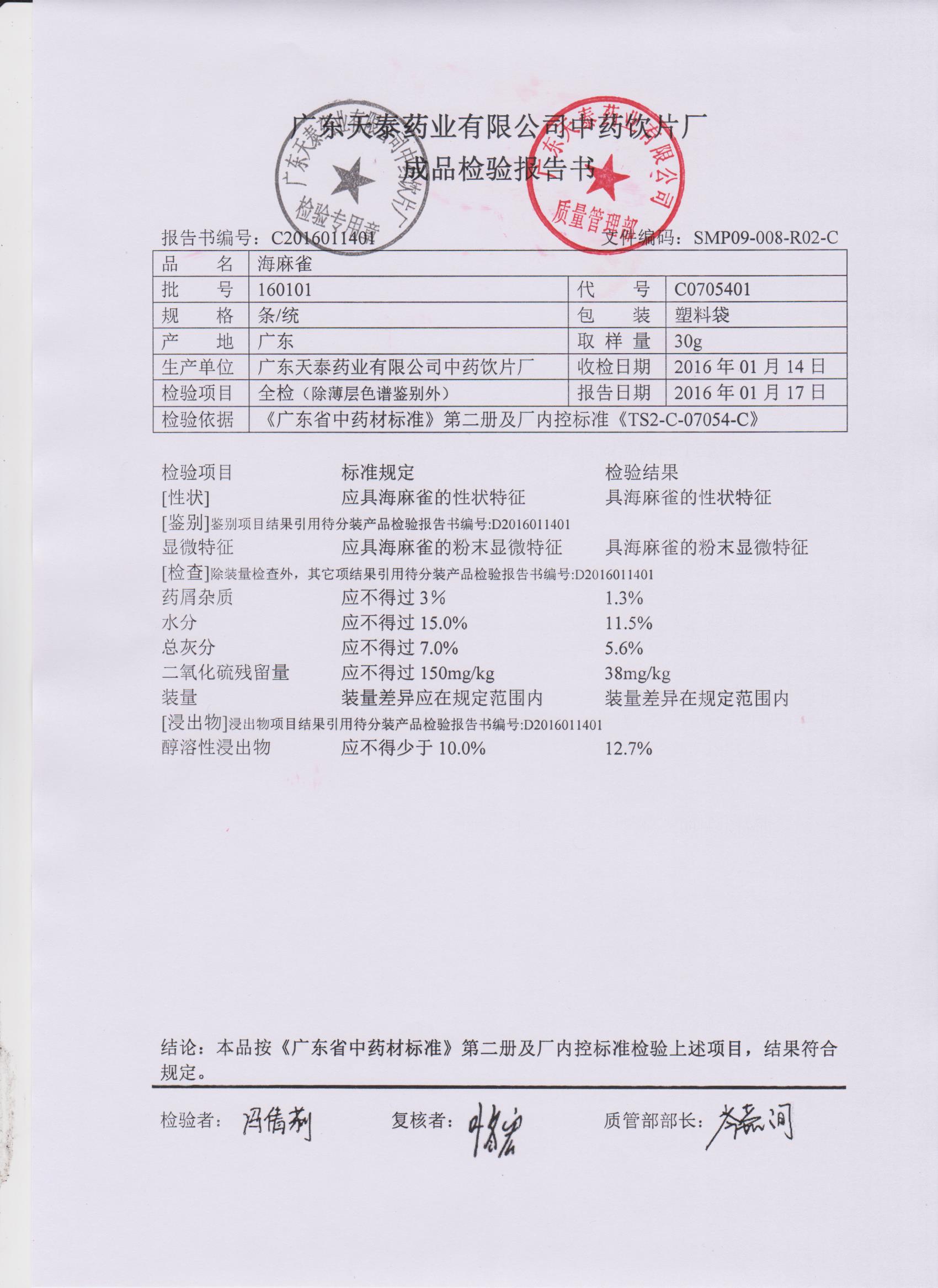 药检报告