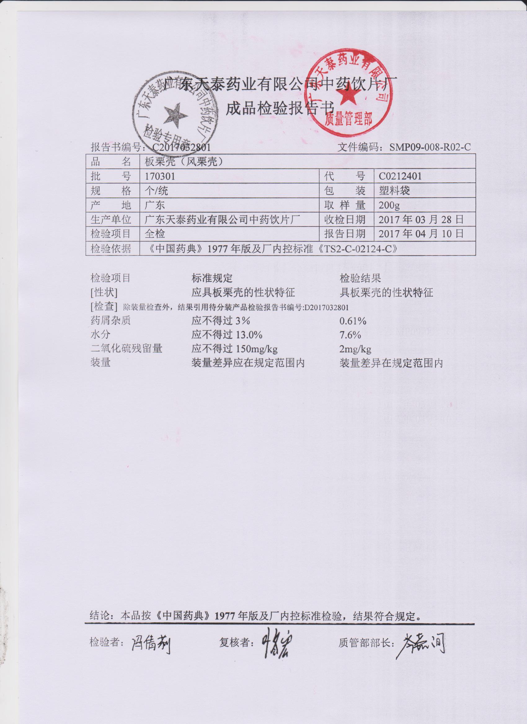 药检报告