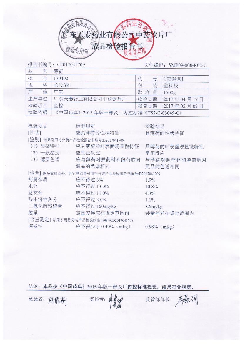 药检报告