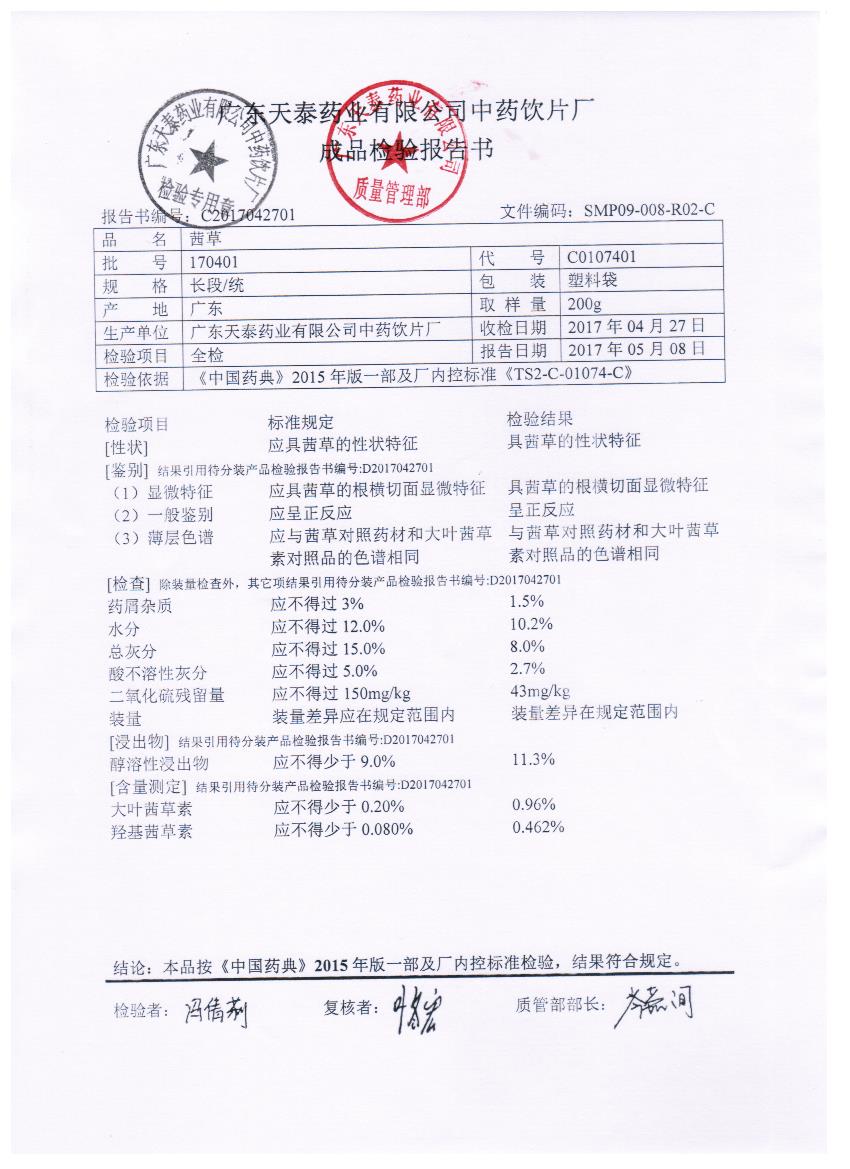 药检报告