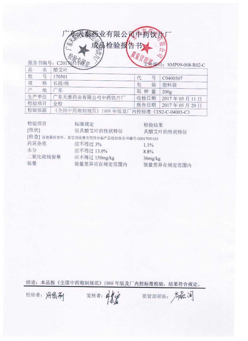 药检报告