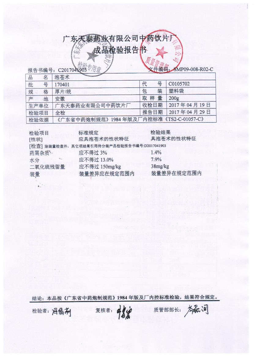 药检报告