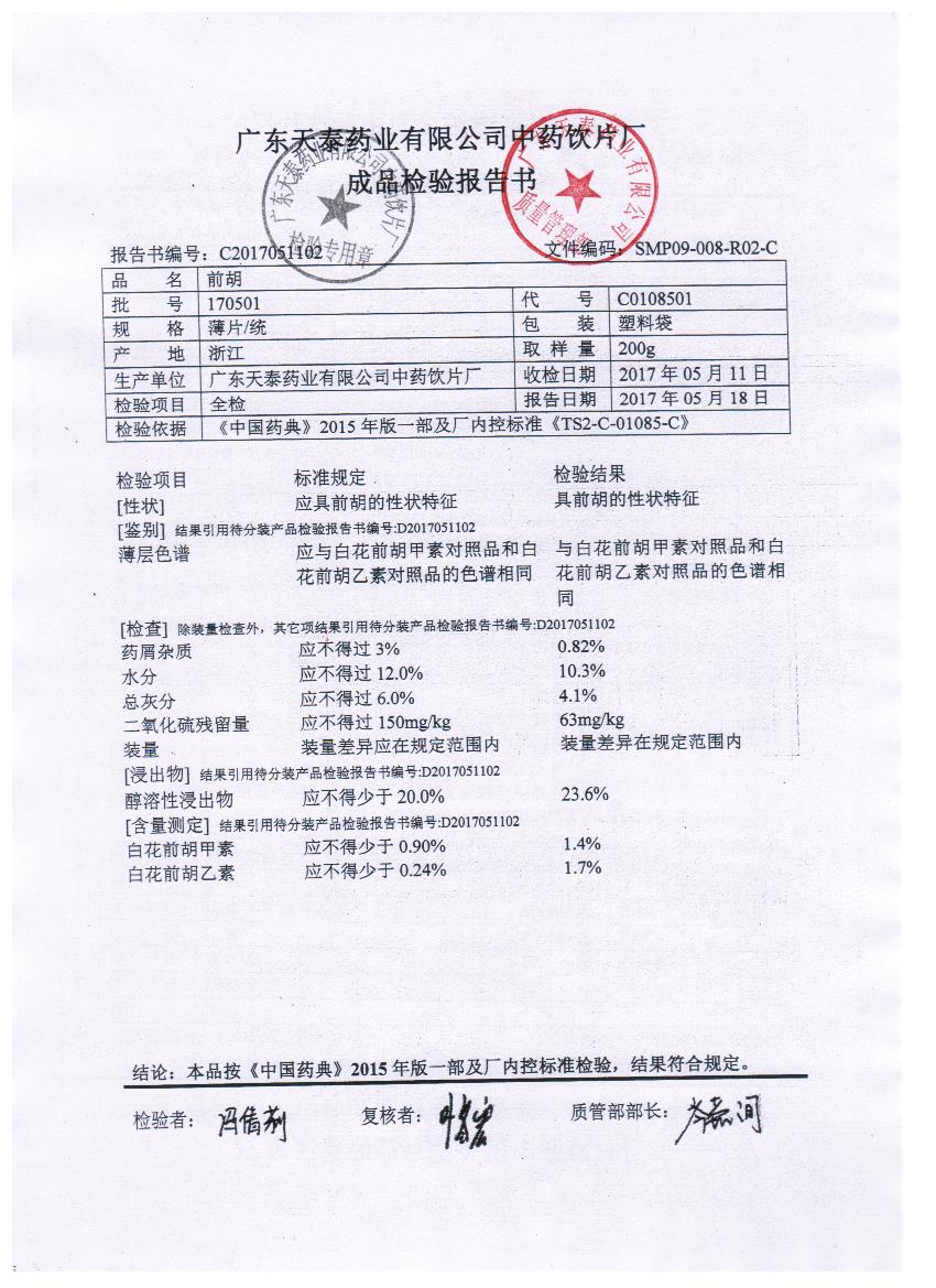 药检报告