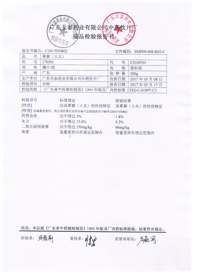 药检报告