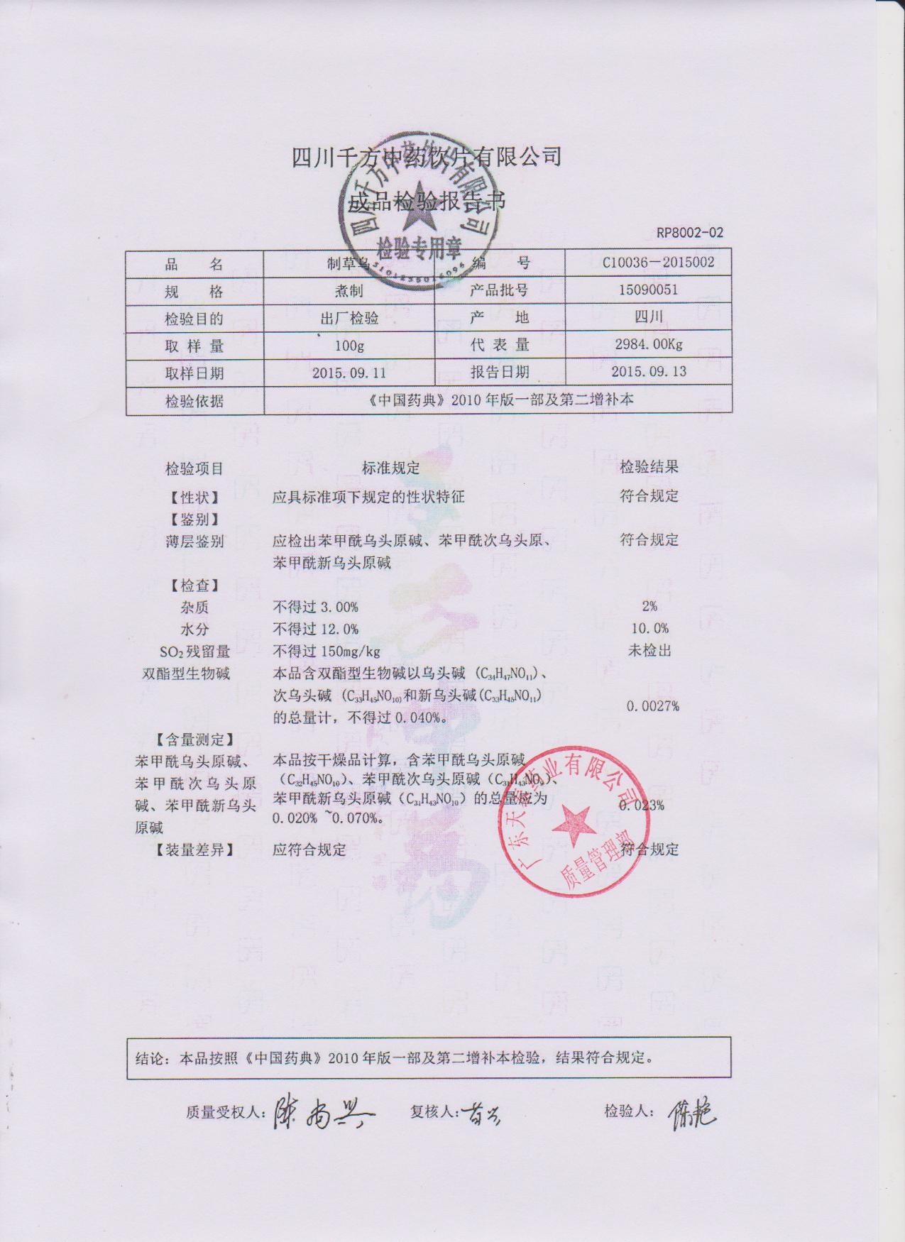 药检报告