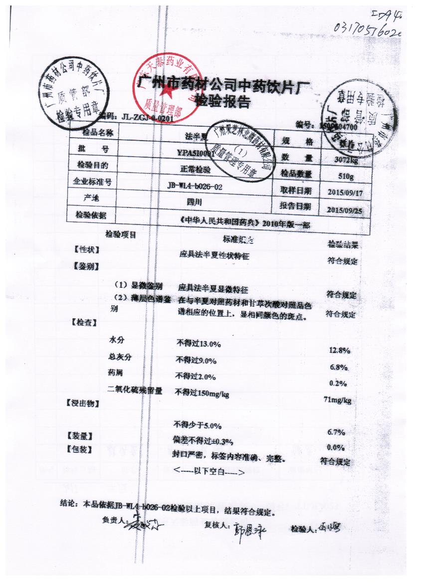 药检报告