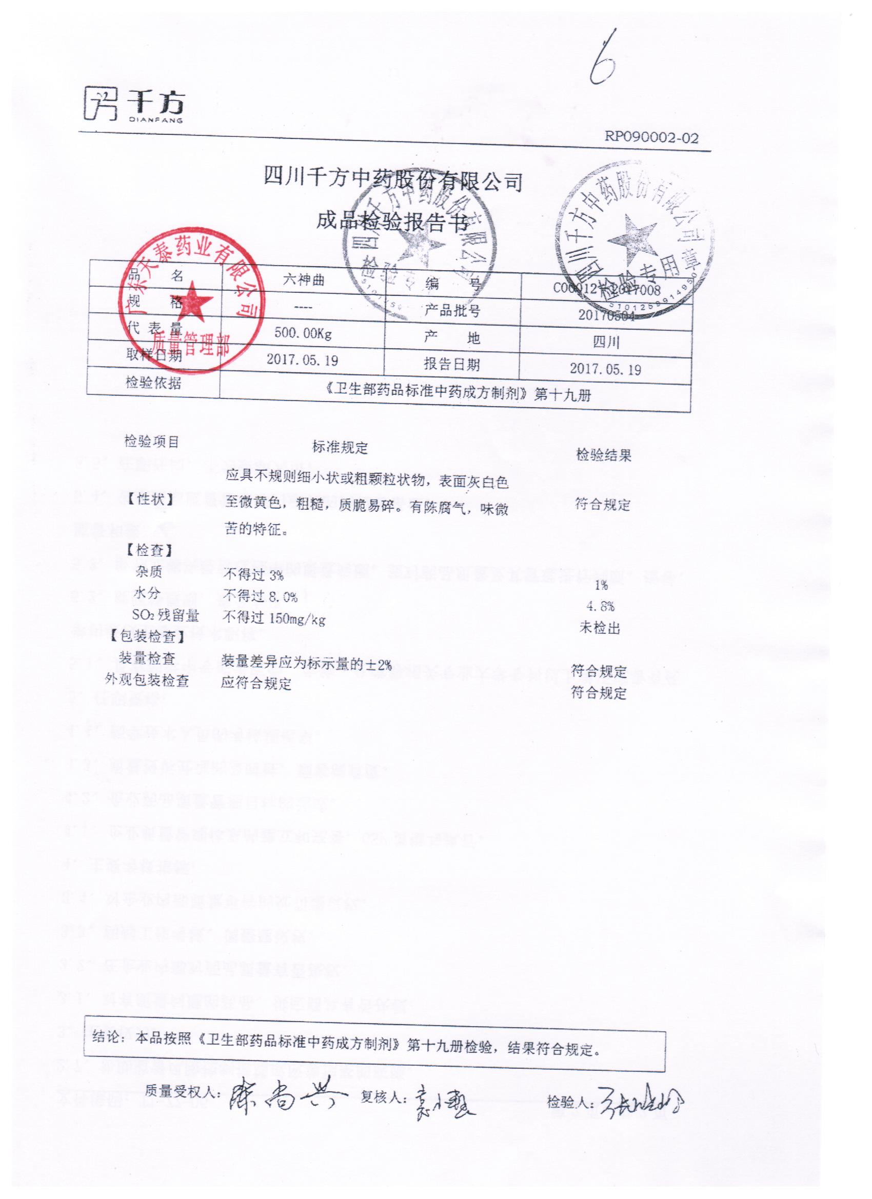 药检报告