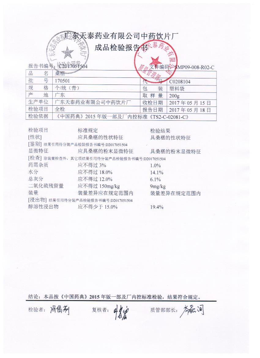药检报告