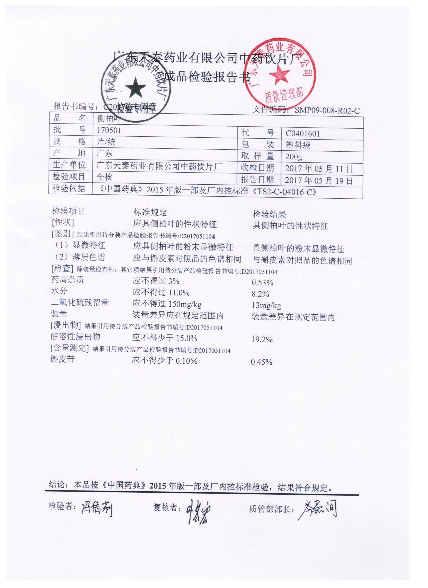 [侧柏叶]侧柏叶(片/统)