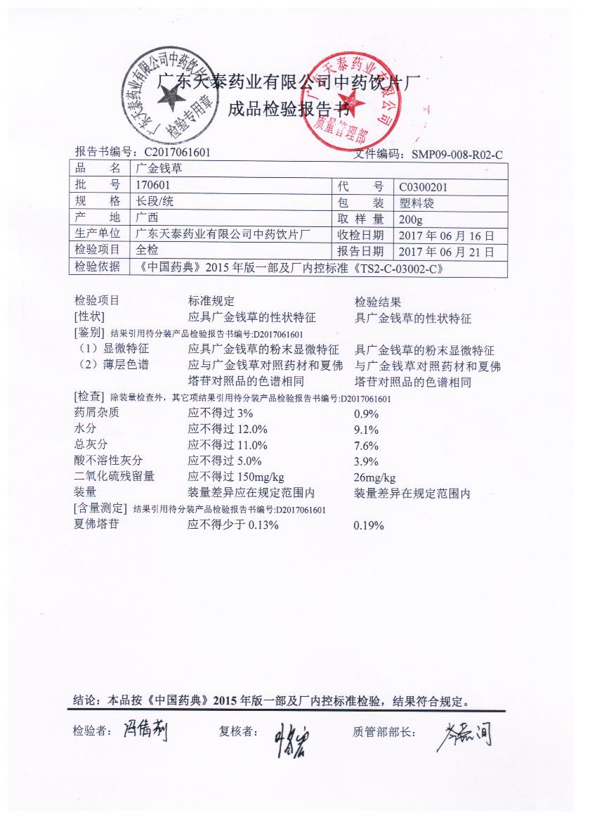 药检报告