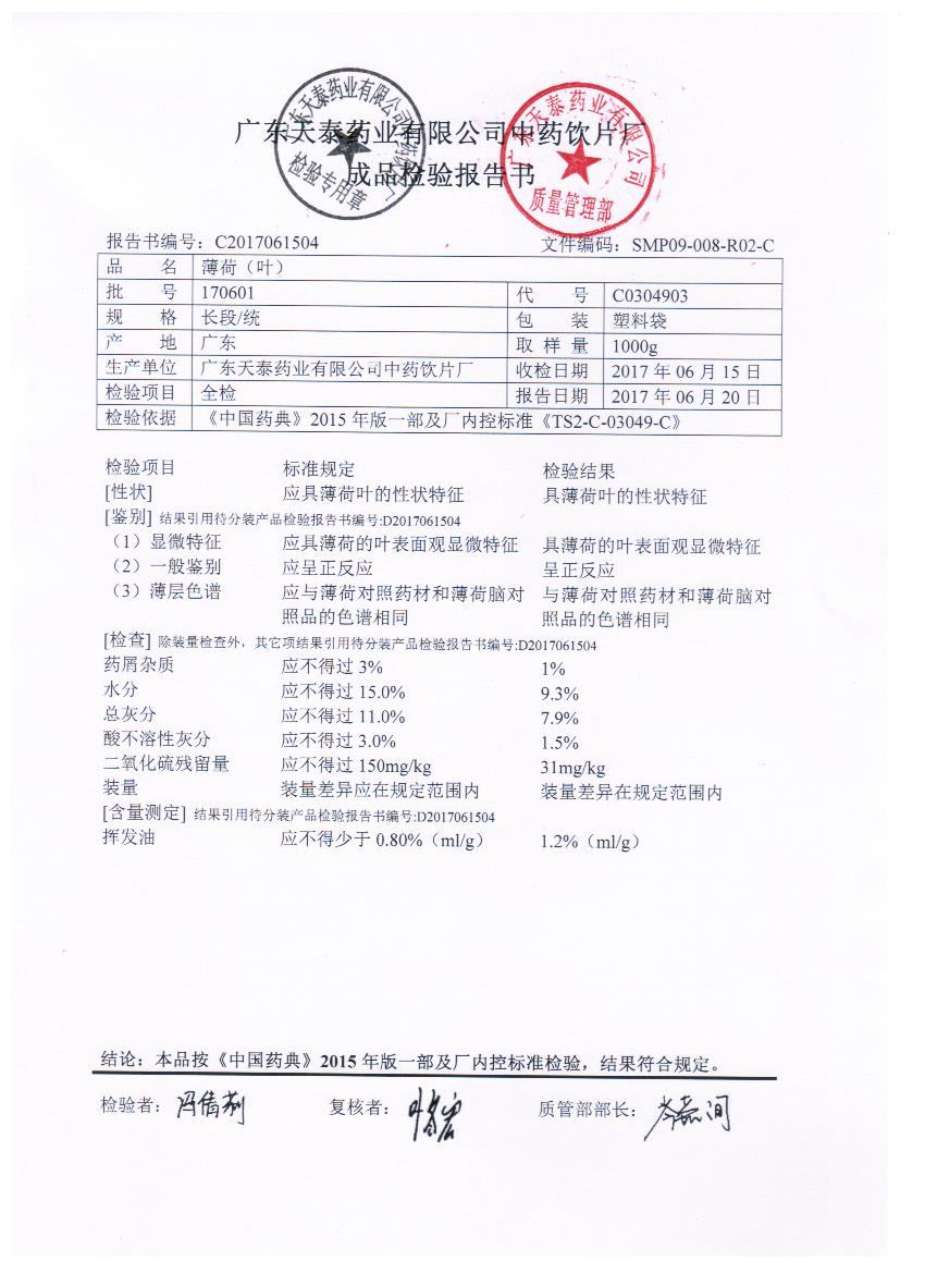 药检报告
