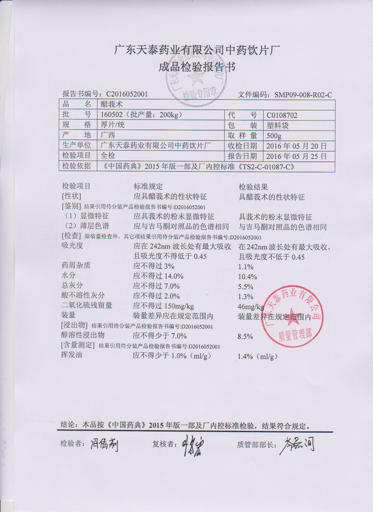 药检报告