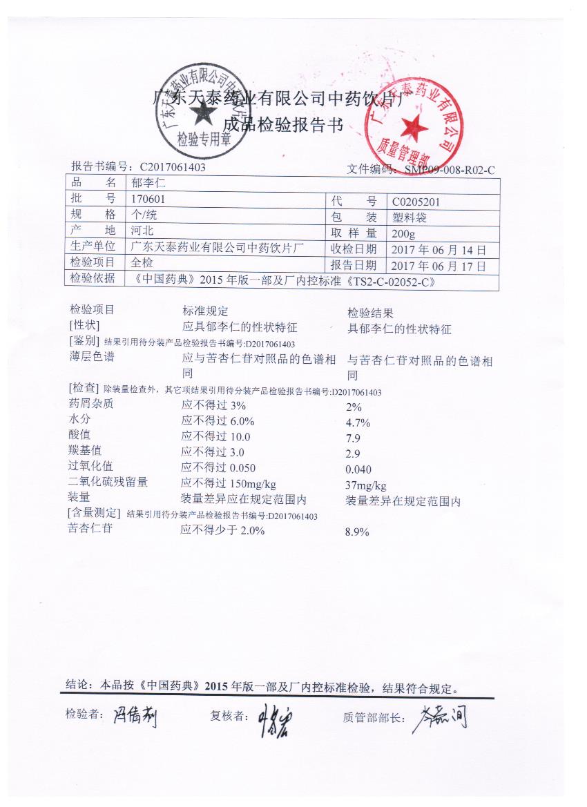 药检报告