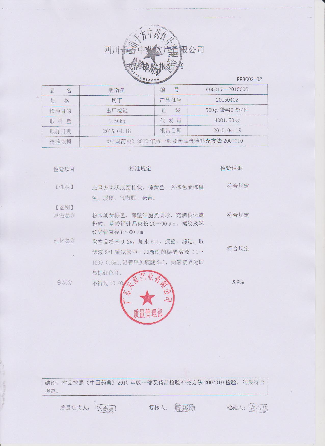 药检报告