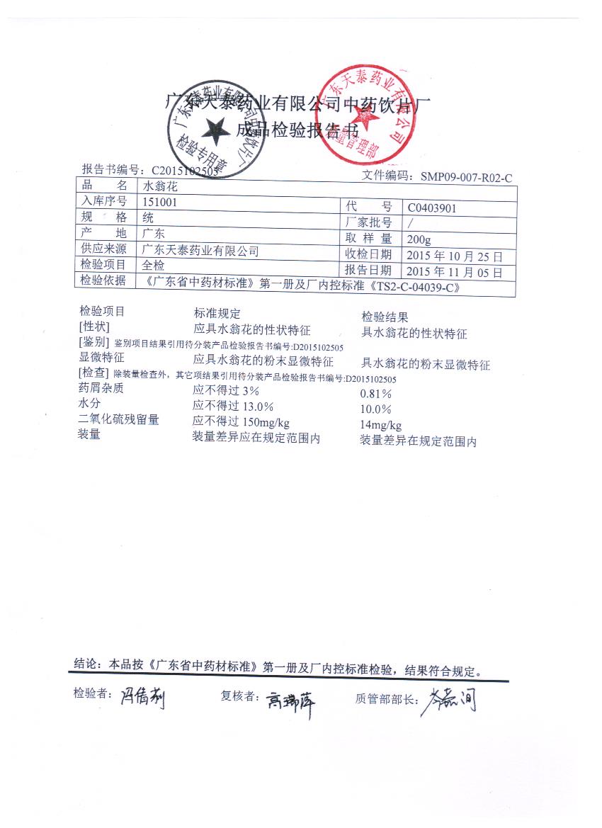 药检报告