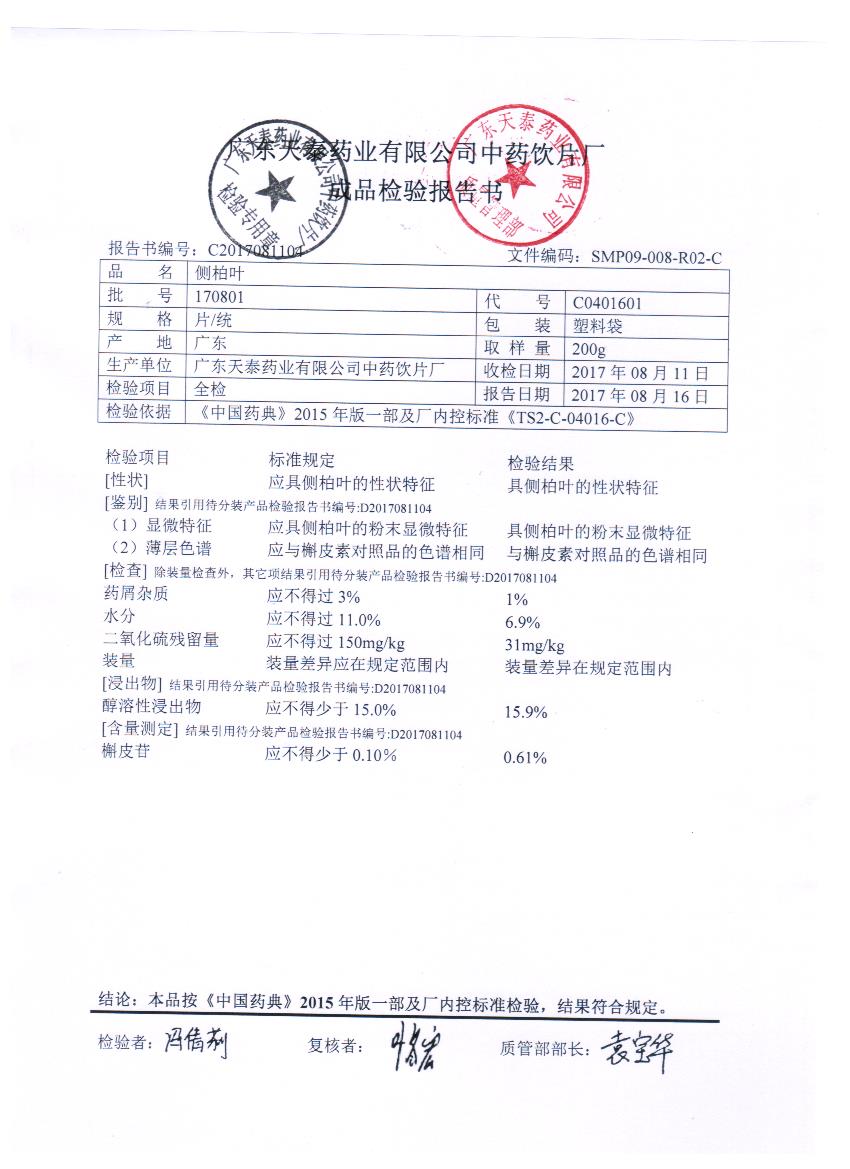 [侧柏叶]侧柏叶(片/统)