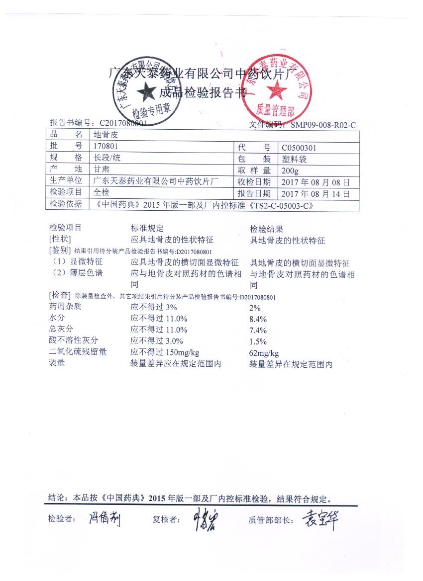 药检报告