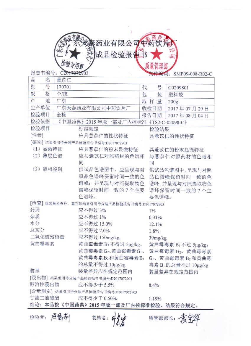 药检报告