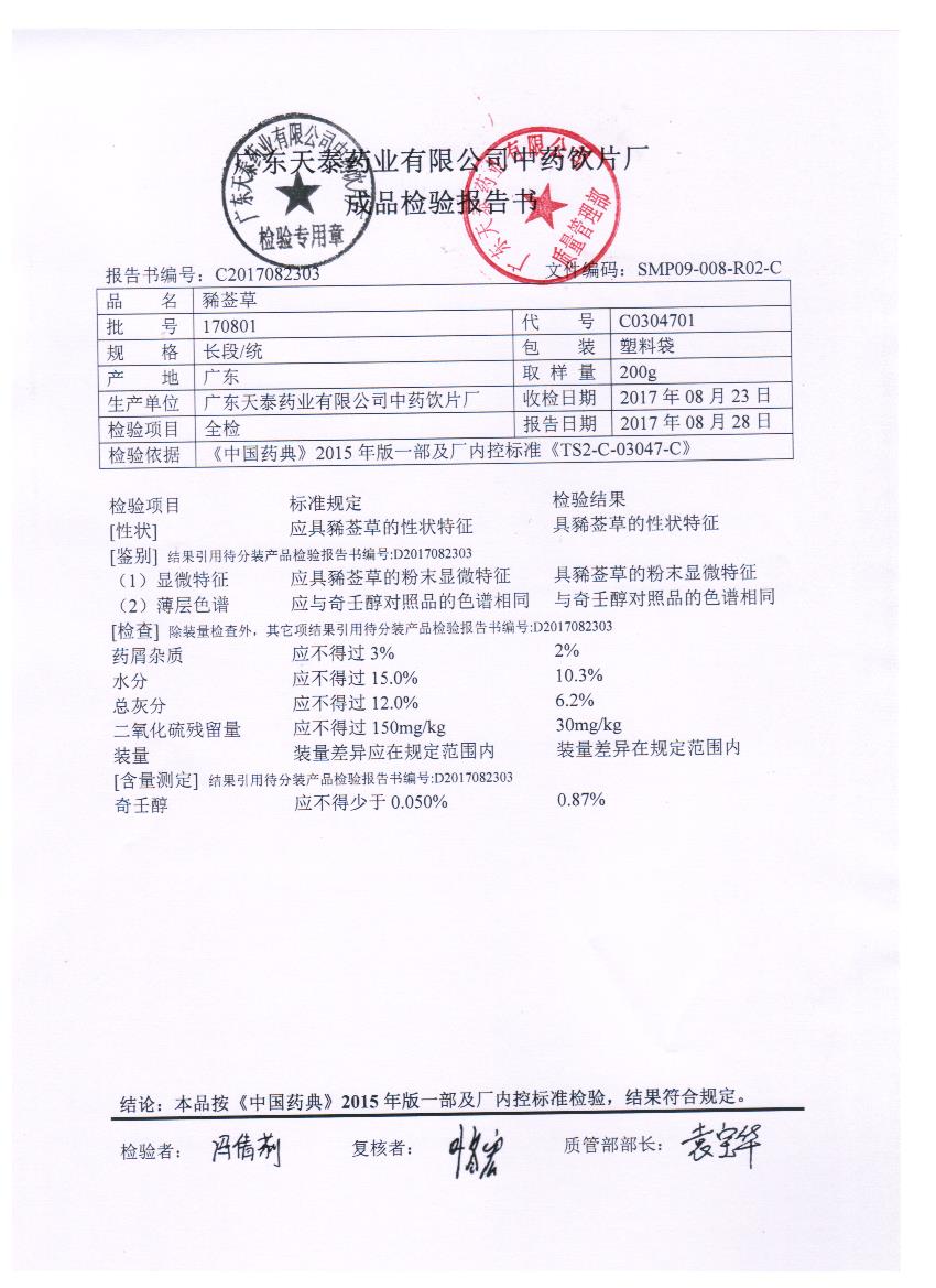药检报告