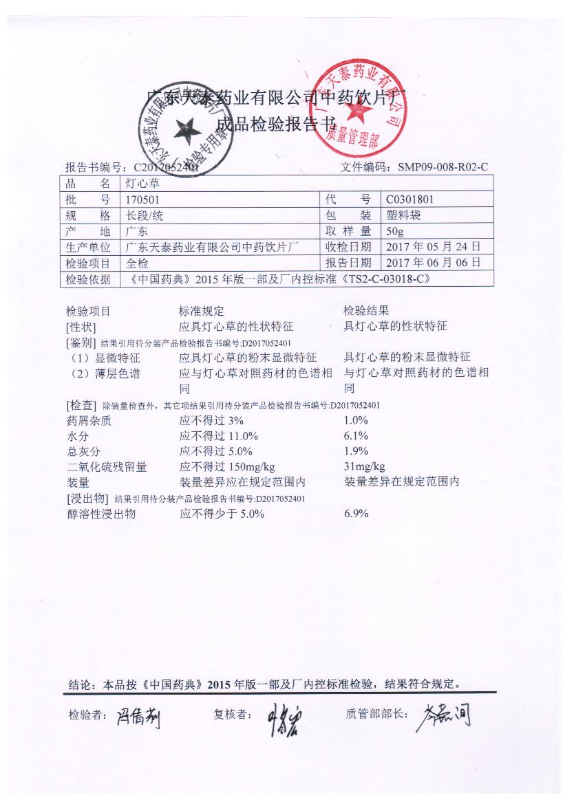 药检报告