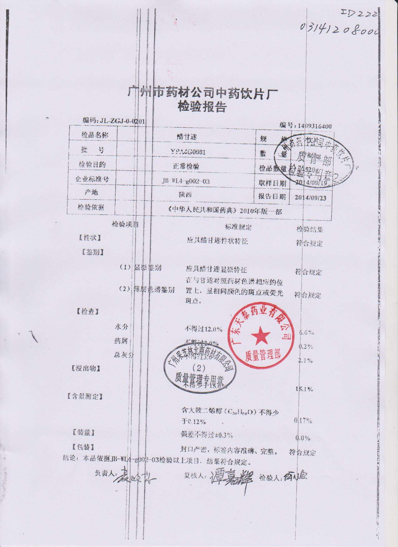 药检报告