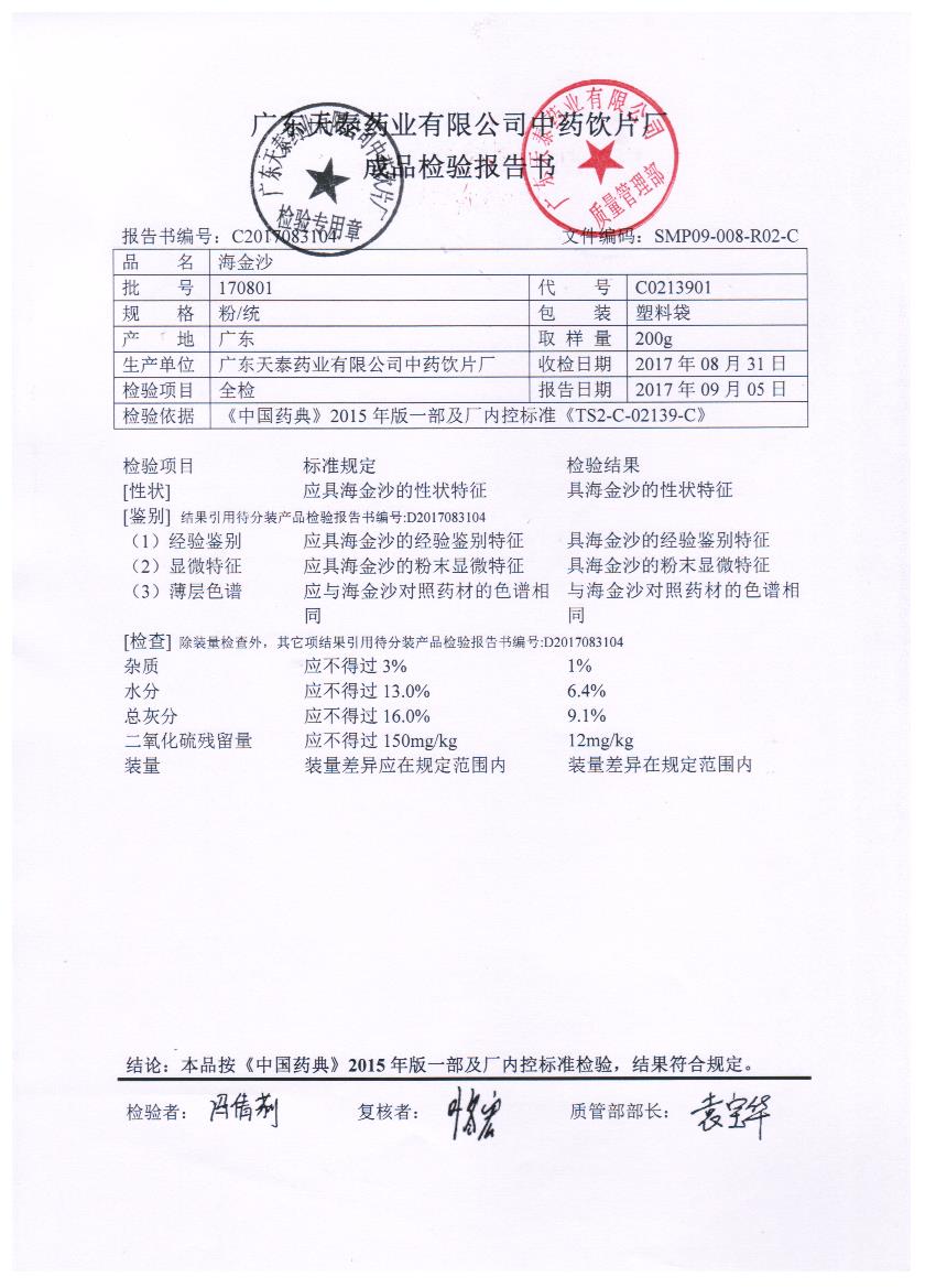 药检报告