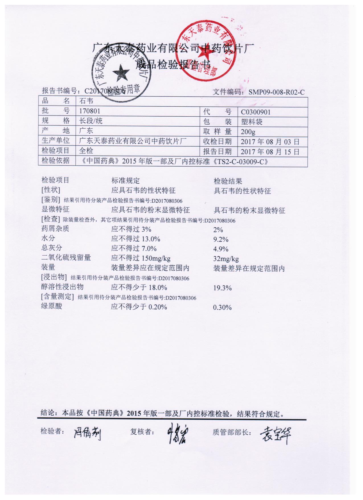药检报告