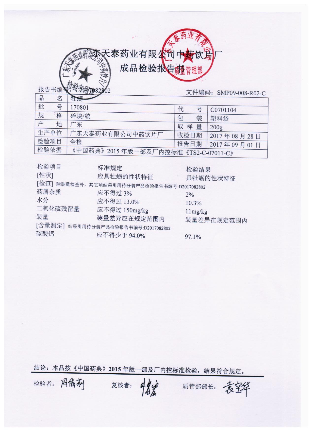 药检报告