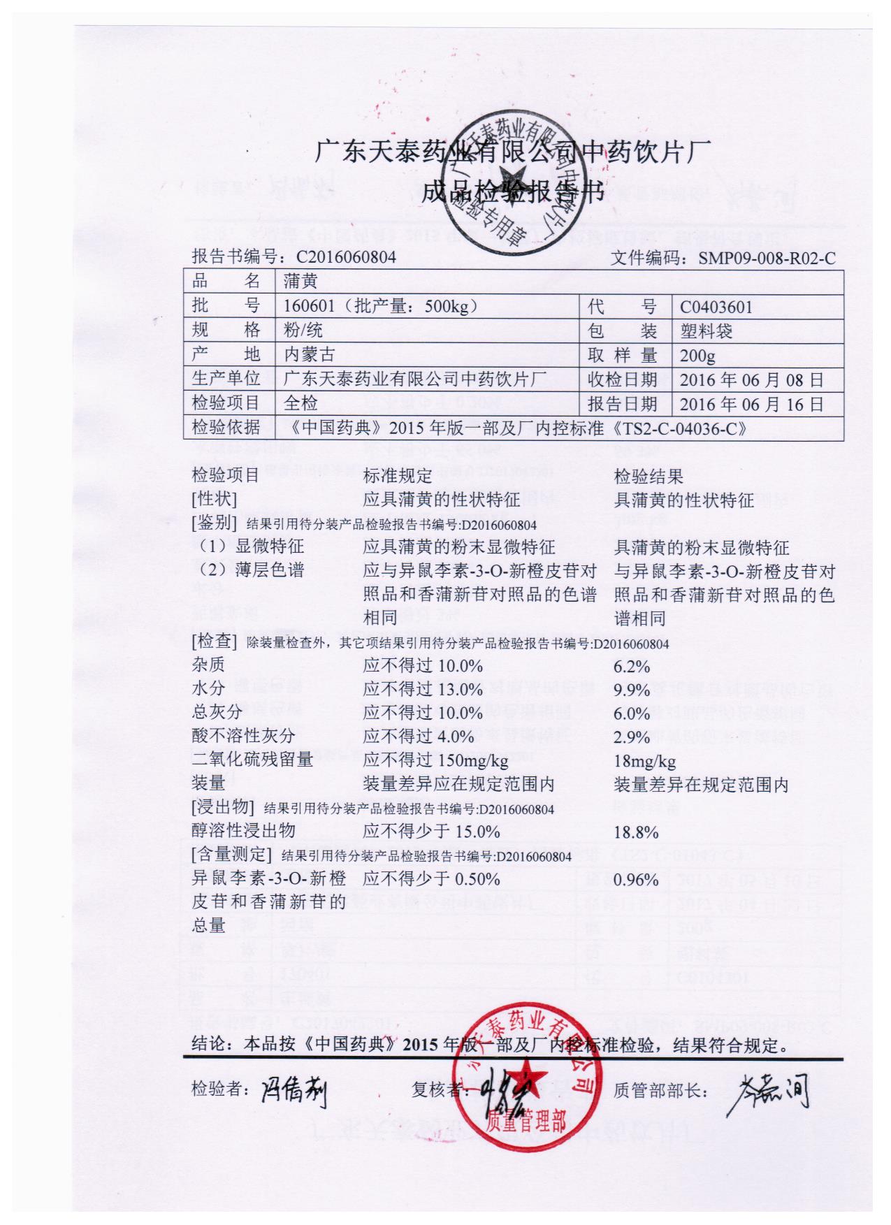 药检报告