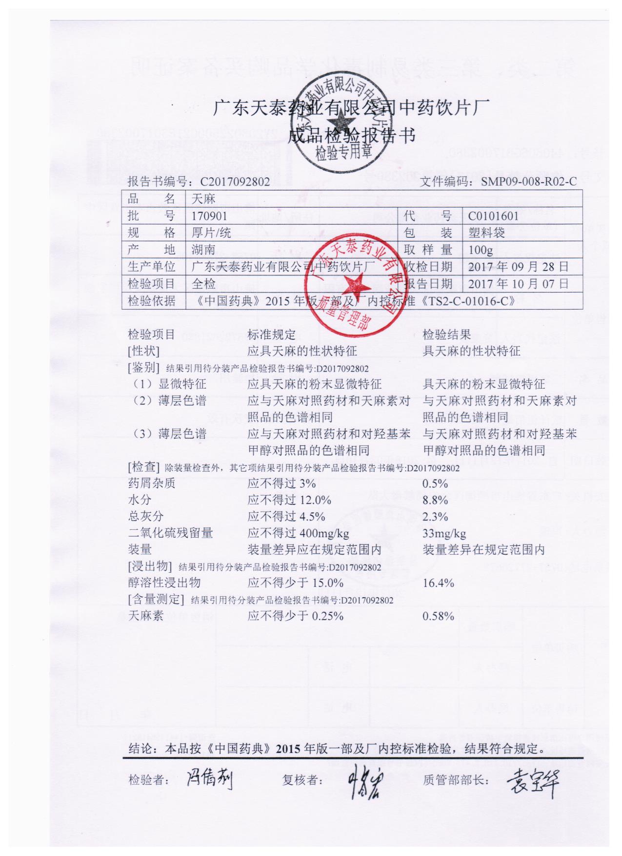 药检报告