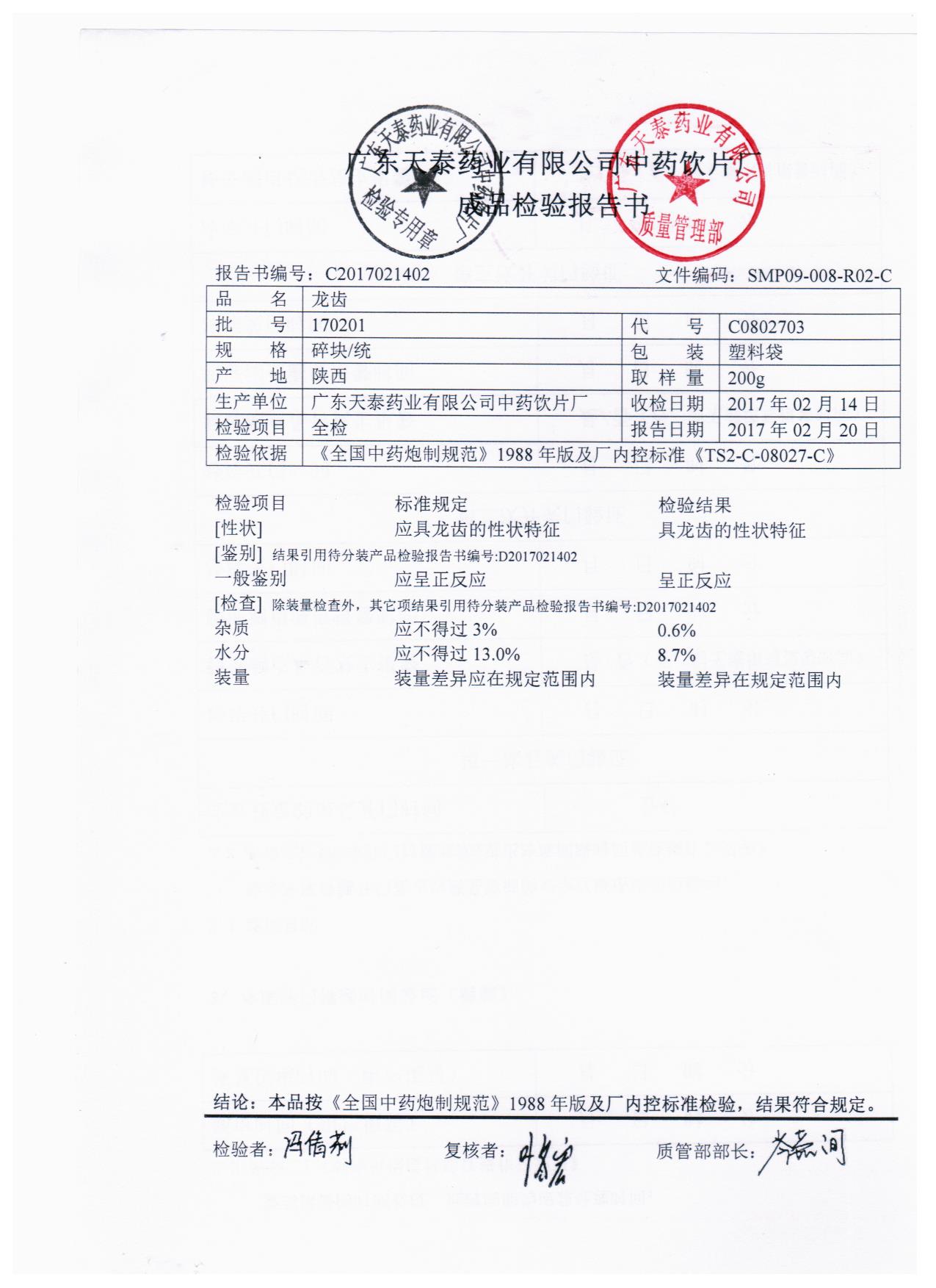 药检报告